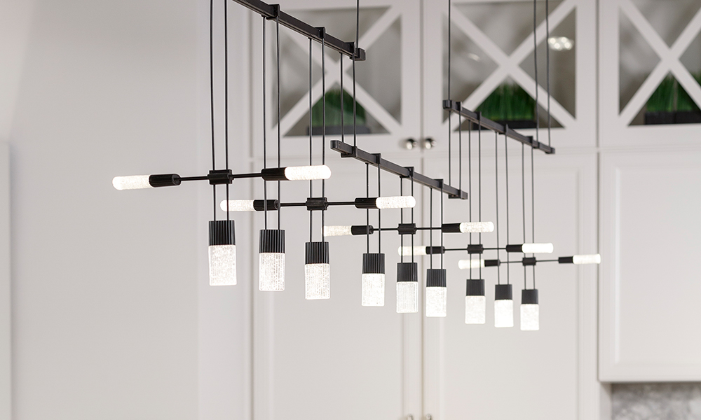 Lighting can have a big impact in your kitchen and bathroom. You may have a great window or skylight for fantastic natural light during the day, but the lighting you choose for overcast days, evenings, and early mornings can greatly affect the usefulness and aesthetics of your space. You may like to read in the tub with a glass of wine and need a great pendant or chandelier to illuminate your relaxing time, or a pair of pendants for your mirror as you prepare to start each day. Don’t forget the kitchen, where the perfect lighting piece over an island or table can make a subtle or dramatic statement, depending on your tastes.